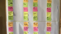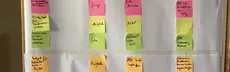Ganz besonders wichtig und hier im Hintergrund zu sehen: Unser "Nächste Schritte"-Plakat, mit dem wir klare Rollen und Verbindlichkeiten geschaffen haben.